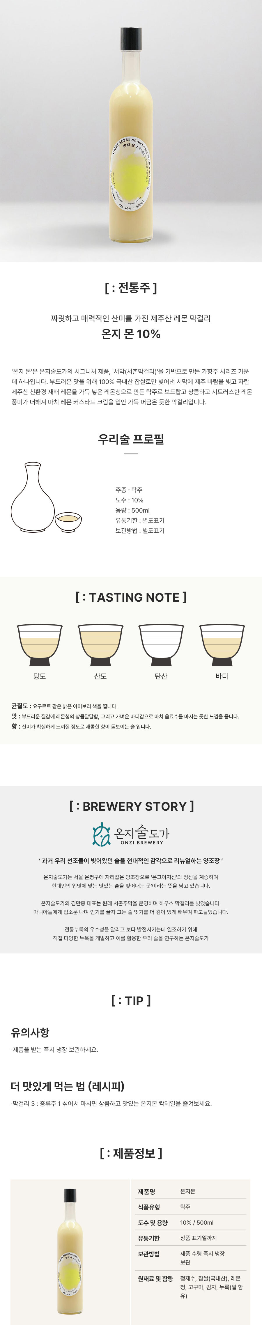 온지술도가 온지 몬 탁주 10도 (500ml)