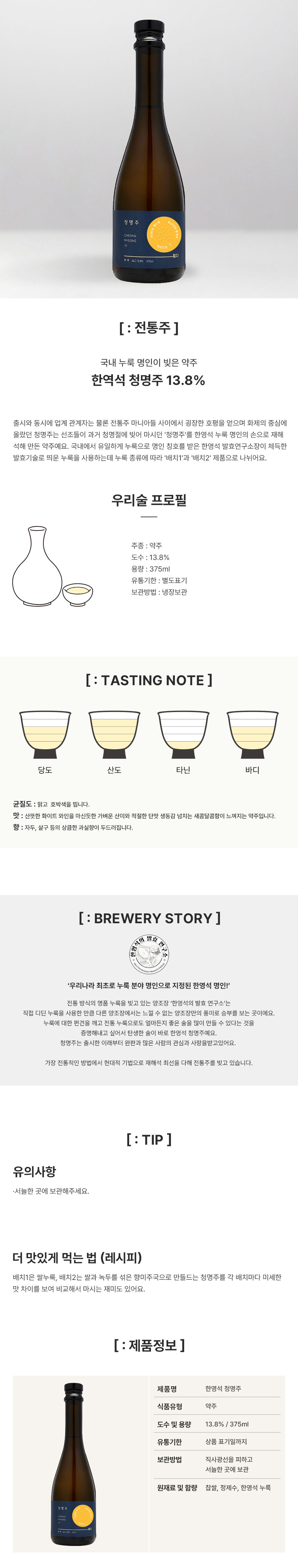 한영석의 발효연구소 한영석 청명주 13.8도 (375ml)