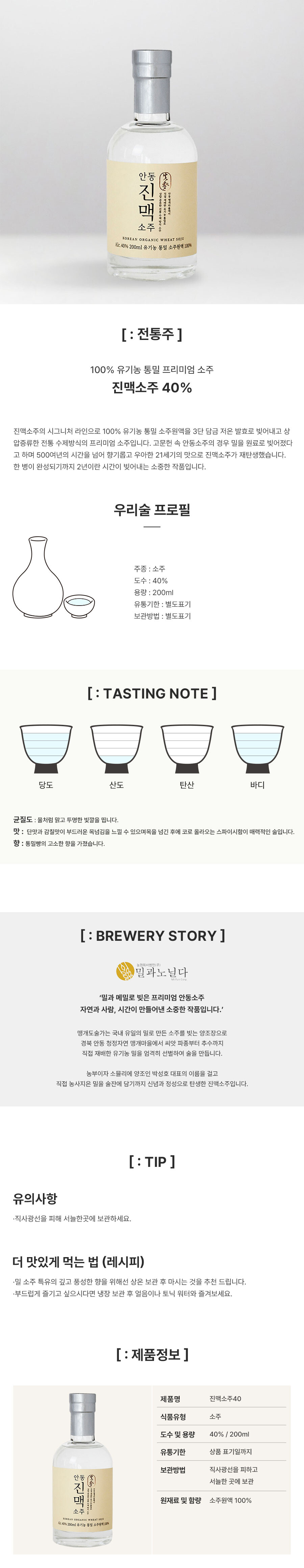 밀과노닐다 안동 진맥소주 40도 (200ml)
