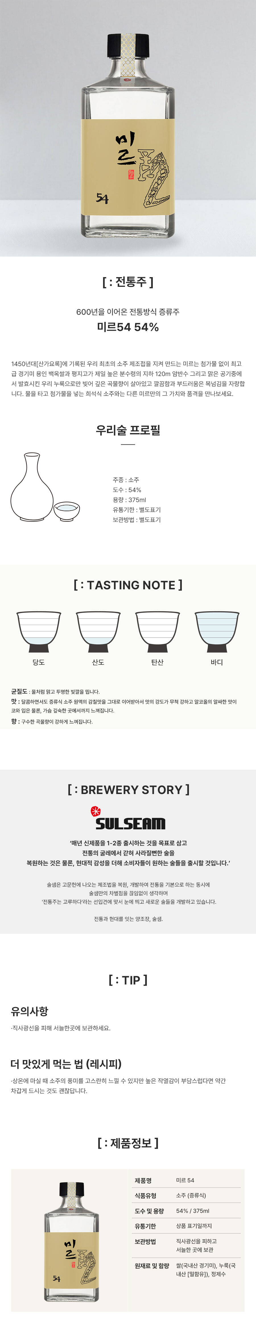 술샘 미르54 54도 (375ml)