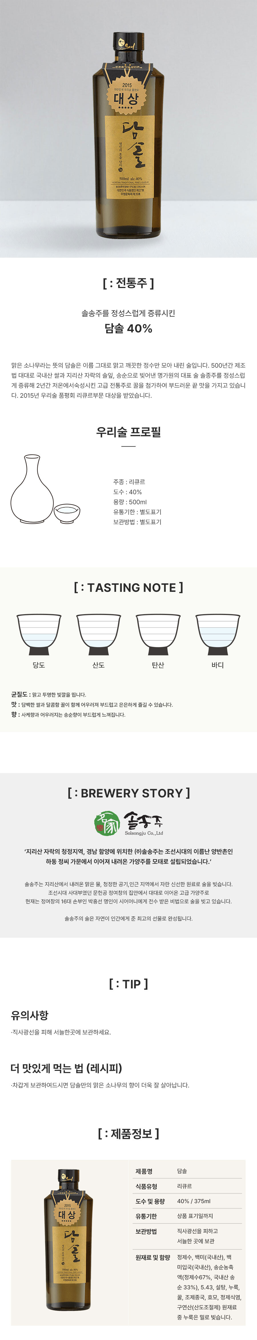 솔송주 담솔 40도 (500ml)