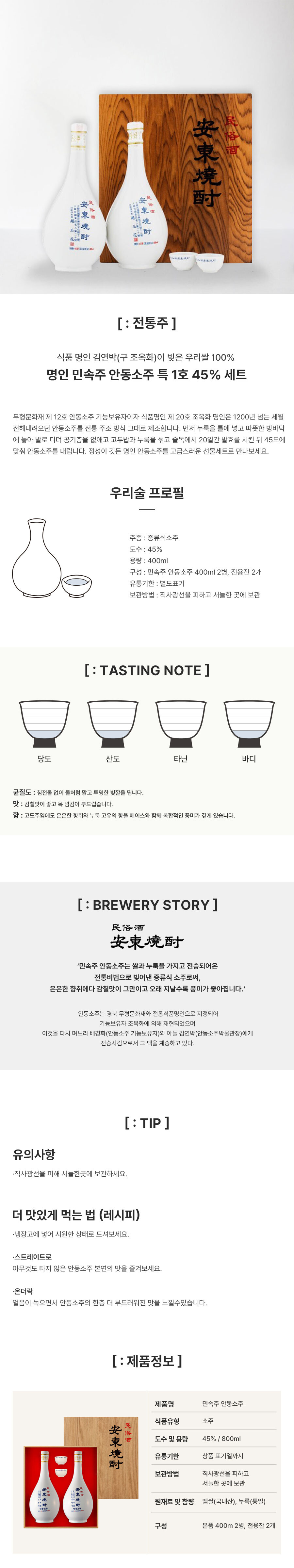 명인 민속주 안동소주 특1호 선물 세트 45도 (400mlx2)