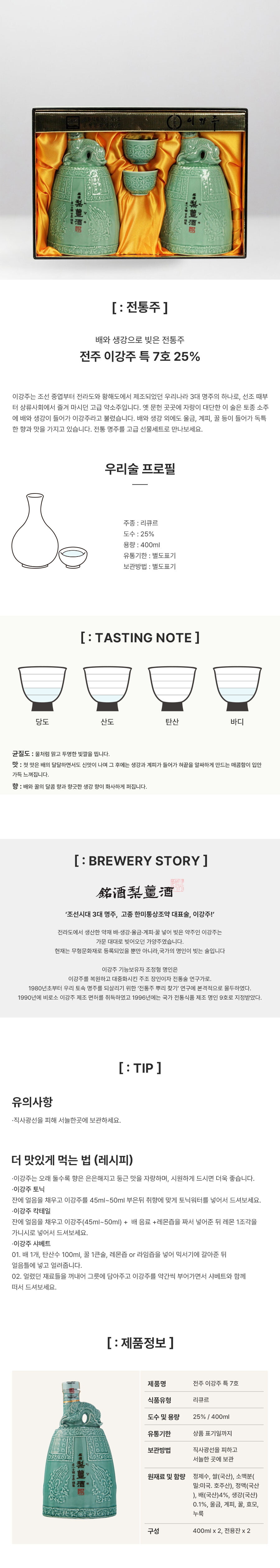 전주 이강주 25도 특7호 (400mlx2) 선물 세트