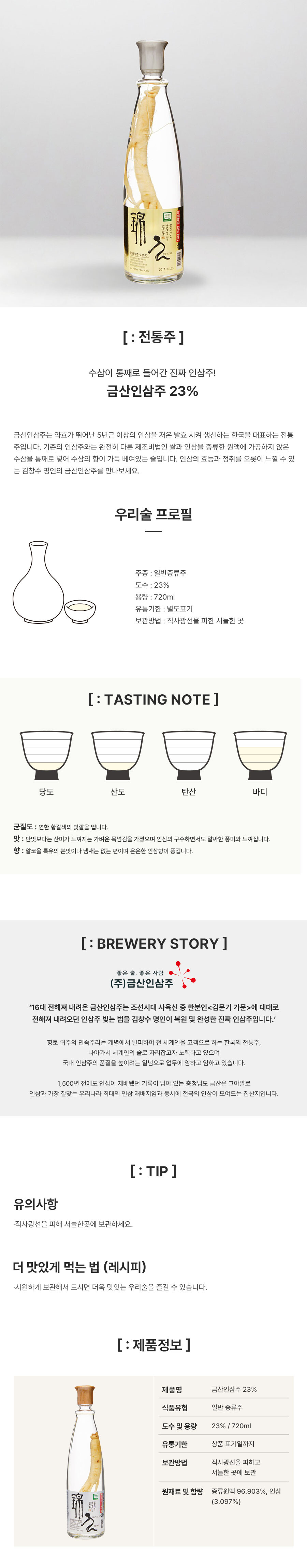 김창수 명인 금산인삼주 수삼단본 23도 (720ml)